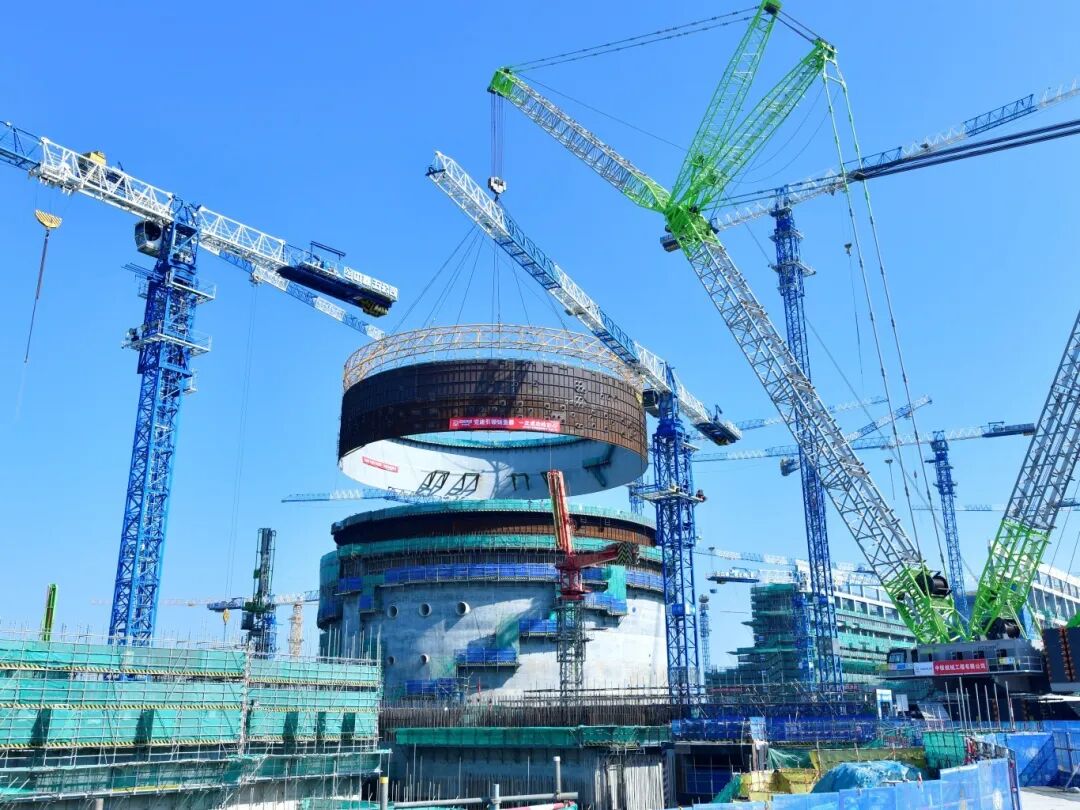 12月16日,中核二四完成“華龍一號(hào)”漳州核電4號(hào)機(jī)組鋼襯里模塊五吊裝,為漳州核電4號(hào)機(jī)組核島主線施工奠定堅(jiān)實(shí)基礎(chǔ)。此次吊裝首次實(shí)現(xiàn)了將大型安裝物項(xiàng)——非能動(dòng)安全殼熱量導(dǎo)出系統(tǒng)熱交換支架與鋼襯里筒體在預(yù)制階段進(jìn)行組合,并實(shí)施整體吊裝,標(biāo)志著公司在核電大型模塊一體化施工領(lǐng)域取得重要技術(shù)進(jìn)展。