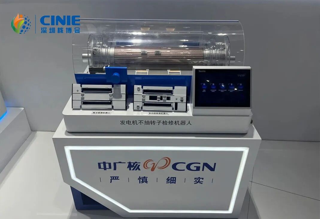 中廣核運營公司攜四項科創產品參加展會,展示了公司在核電運維領域的創新成果和技術實力。其中,公司發電機首席技師王建濤攜團隊研發的發電機不抽轉子檢修機器人在央視新聞亮相。