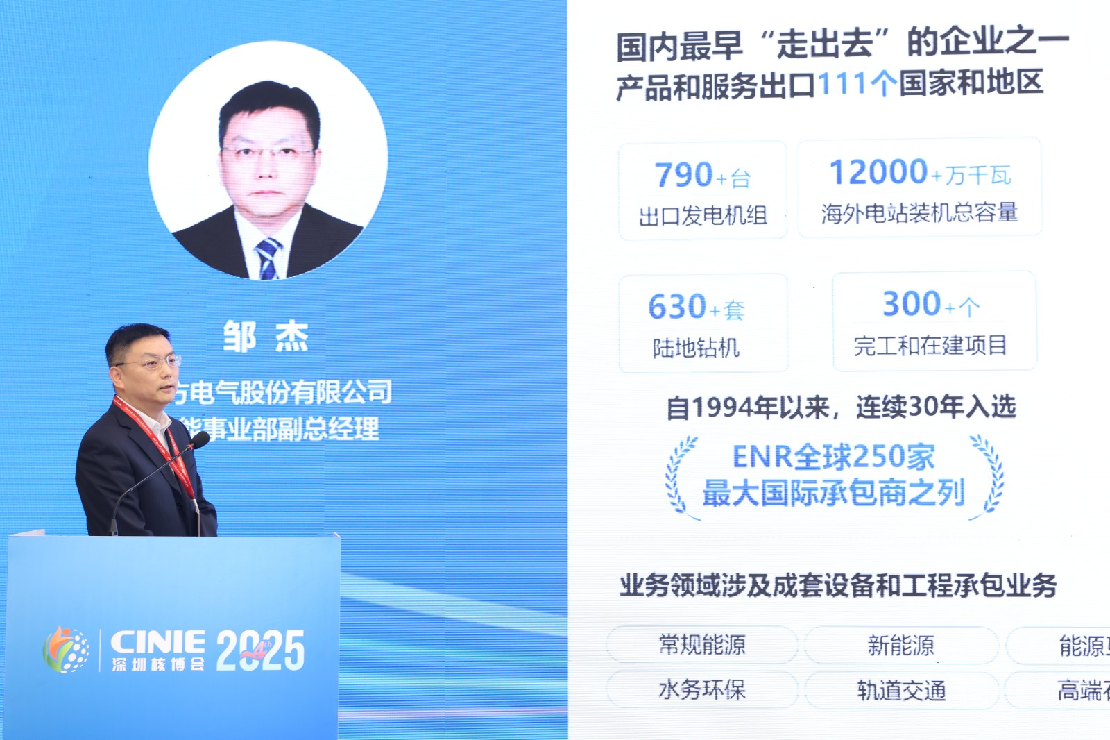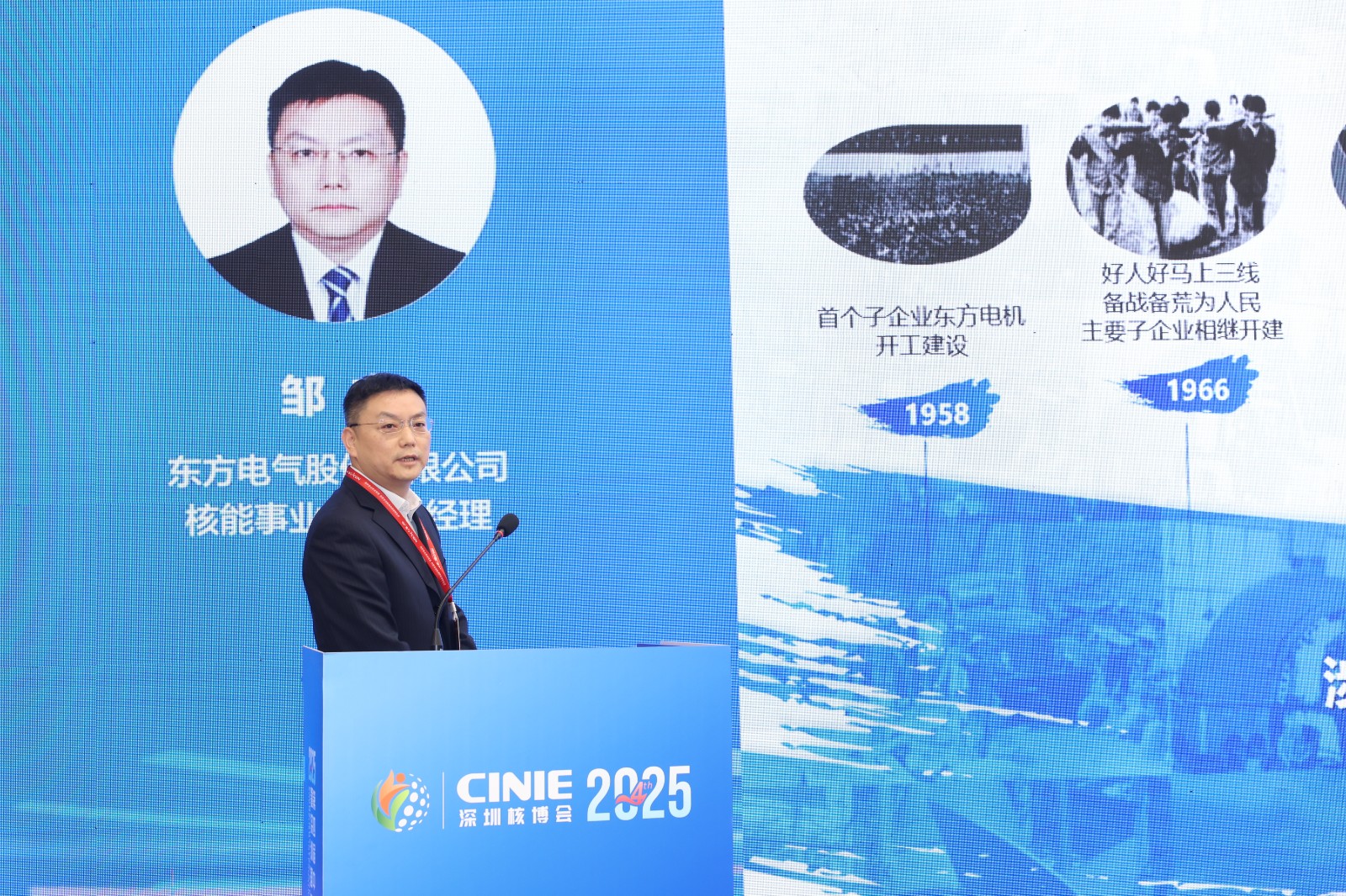 2025年11月13日,東方電氣股份有限公司核能事業部副總經理鄒杰在深圳核博會核電先進裝備與產業鏈論壇發表《數智化附能核電裝備高質量發展》主旨報告。