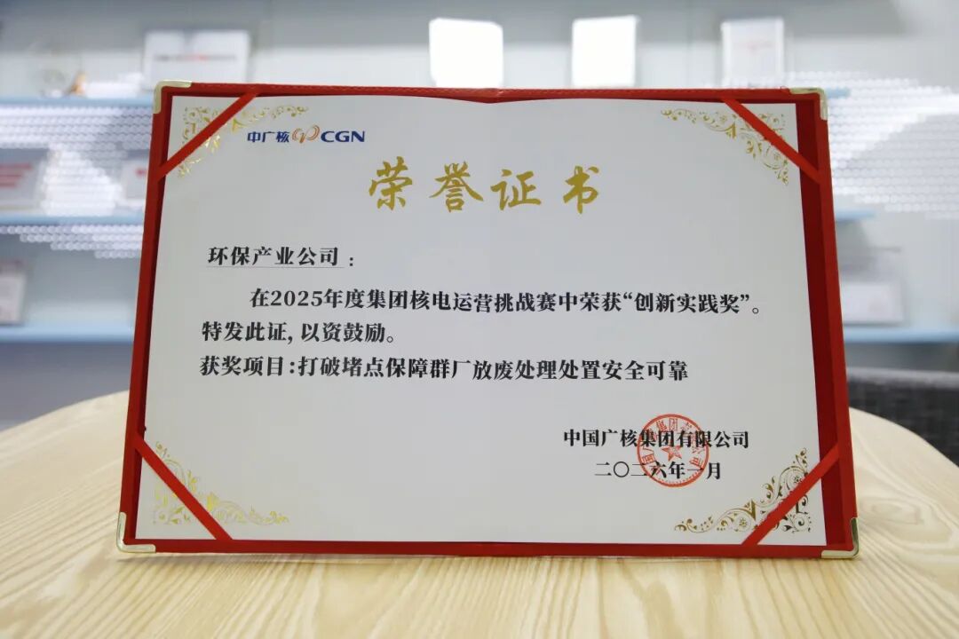 “錨定以核環(huán)保為特色科技型環(huán)保產業(yè)主體新功能定位,聚焦主責主業(yè)重塑業(yè)務體系,破解發(fā)展難題,改革成效持續(xù)顯現”榮獲中廣核2025年度單項獎