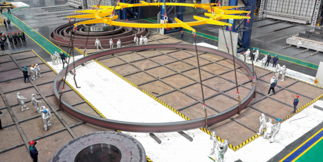 本次發(fā)布的核心亮點,是一款專為四代核電工程研制的超大直徑一體成形無縫軋環(huán)。該產(chǎn)品作為等比例驗證件,母材重量達280噸,外徑18.63米,由伊萊特聯(lián)合天鍛公司等企業(yè),通過全球最大的22米軋環(huán)軋筒機軋制成形。該鍛件將為核電項目的安全運行提供至關重要的硬件基礎,是我國推進先進核電技術裝備自主化的重要成果。