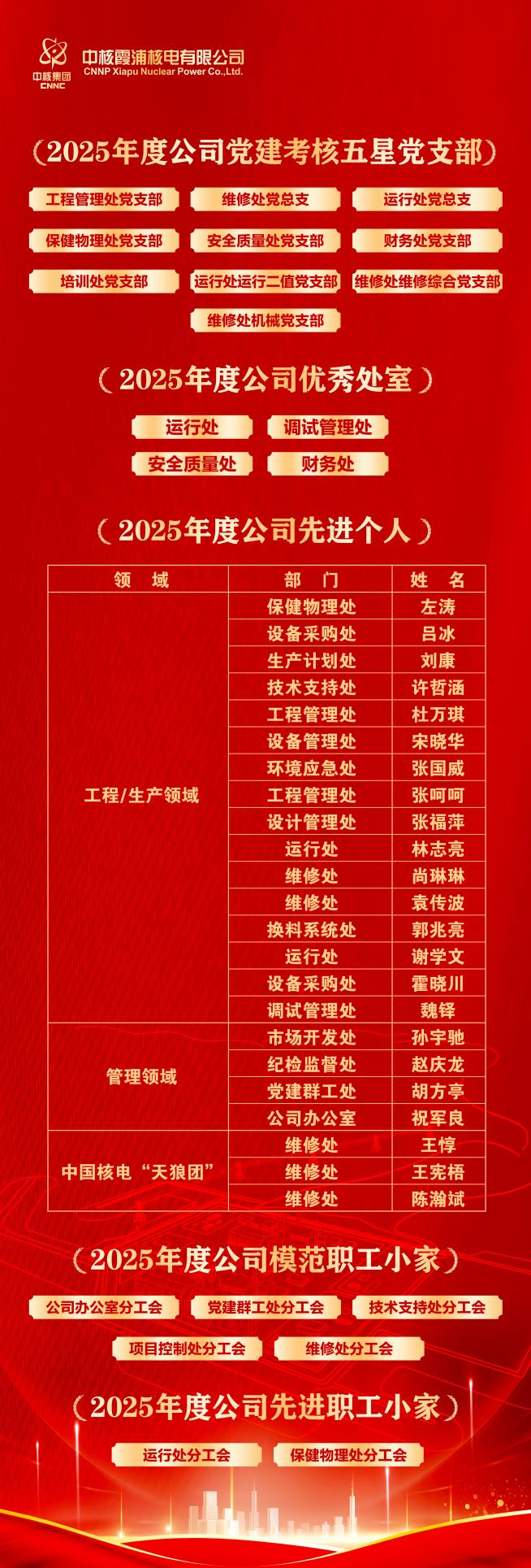 會議對2025年度公司優秀處室、福建省金牌工匠和公司先進個人、黨建考核“五星黨支部”、模范職工小家和先進職工小家、科技成果和管理提升獲獎項目等進行了集中表彰。