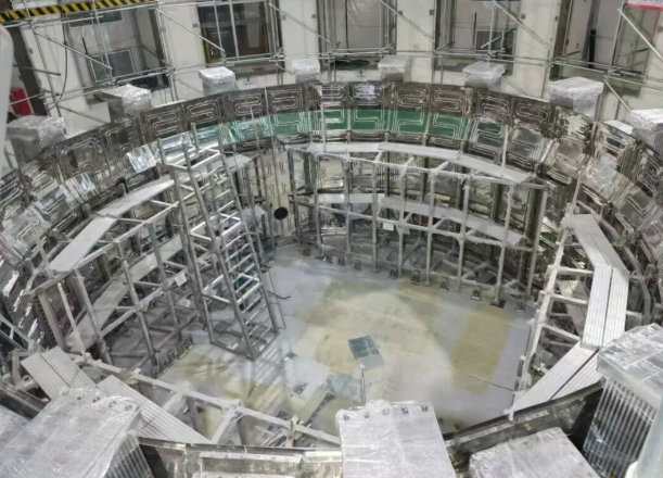 近日,緊湊型聚變能實驗裝置BEST項目的關(guān)鍵部件——底部冷屏側(cè)環(huán)體成功落位安裝。該部件直徑約11.4米,高度超4.5米,重量達(dá)10噸,其核心功能是隔絕主機(jī)低溫部件與外部杜瓦之間的熱傳導(dǎo)和熱輻射,對維持裝置超導(dǎo)環(huán)境與運行安全具有關(guān)鍵作用。