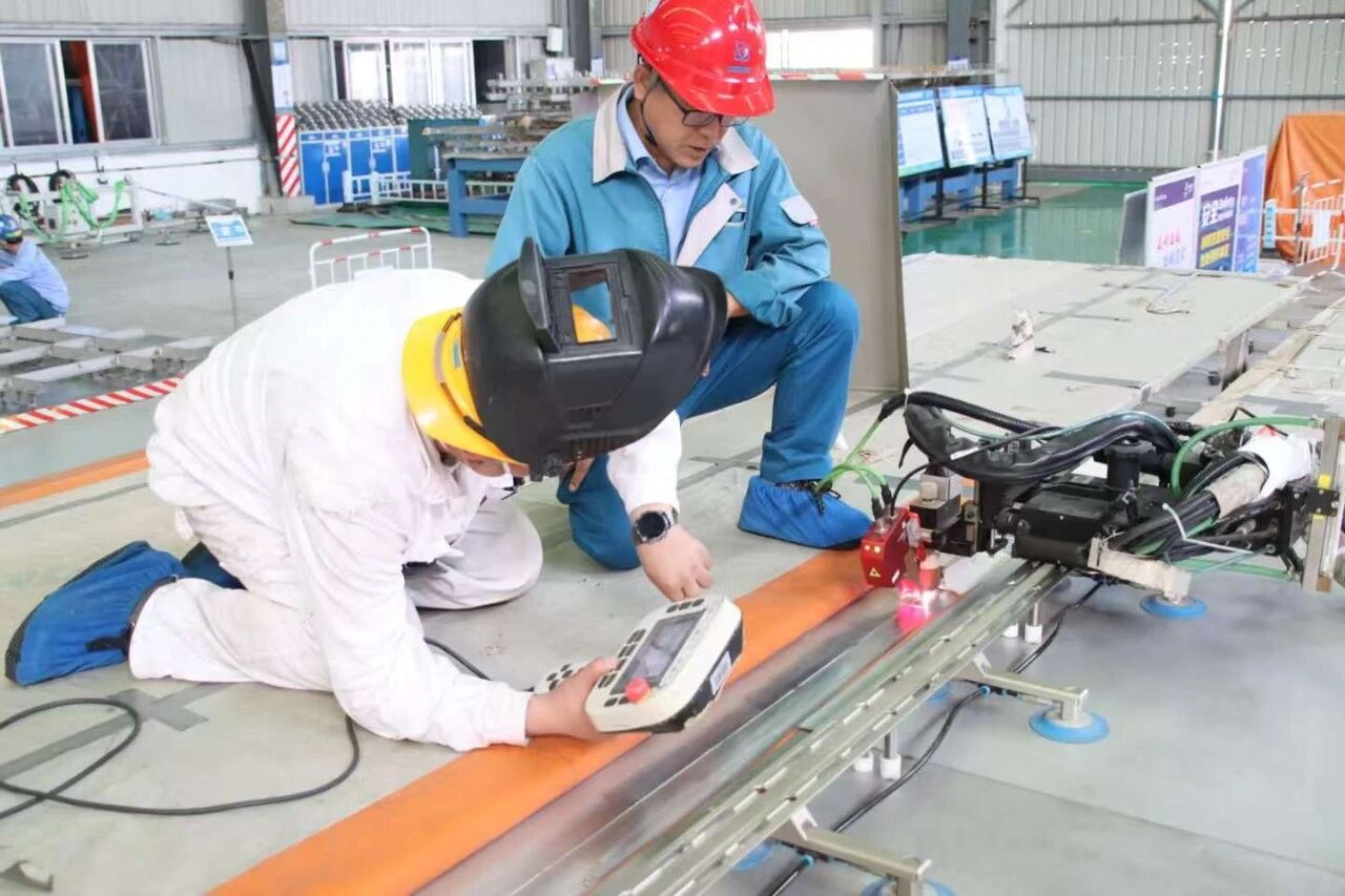 在不銹鋼水池模塊制作施工過程中,項(xiàng)目團(tuán)隊(duì)創(chuàng)新推出“墻頂整體模塊化”“前后臺協(xié)同預(yù)制”“拼裝與吊裝場地分離”三大施工策略。池壁施工采用“墻頂整體模塊化”工藝,單個(gè)水池可減少現(xiàn)場焊縫36米,優(yōu)化工期1個(gè)月;在“車間預(yù)制、整體模塊化安裝”的建造模式下,項(xiàng)目團(tuán)隊(duì)將ASG不銹鋼水池分解為多個(gè)大型墻板、頂板模塊,運(yùn)用焊接機(jī)器人、等離子弧焊接工藝完成自動(dòng)拼焊,質(zhì)量穩(wěn)定均一,還通過激光自動(dòng)排版下料提升材料利用率;模塊經(jīng)車間預(yù)制、在臨建區(qū)域組裝后通過軸線車運(yùn)至吊裝現(xiàn)場,最終由大型吊機(jī)整體吊裝就位。