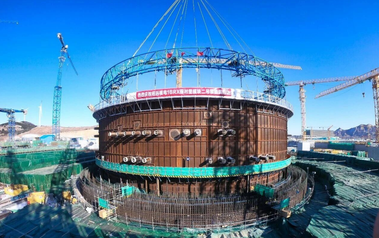 2月8日,中廣核山東招遠核電項目1號機組核島反應堆廠房鋼襯里模塊2順利完成吊裝,整個吊裝過程平穩有序、安全質量受控,為后續施工創造了有利條件。