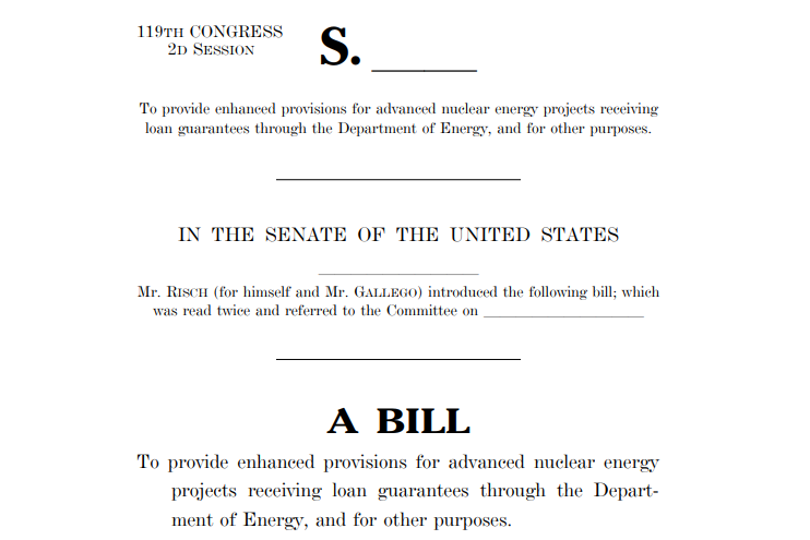 2月10日,美國共和黨參議員吉姆·里施(Jim Risch)(愛達荷州)與民主黨參議員魯本·加列戈(Ruben Gallego)(亞利桑那州)向參議院重新提出了《加速可靠容量法案》 (Accelerating Reliable Capacity Act)。
