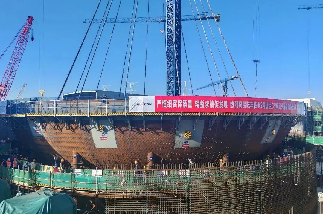 由國核設(shè)備承制的陸豐核電2號(hào)機(jī)組鋼制安全殼底封頭,2月6日完成吊裝