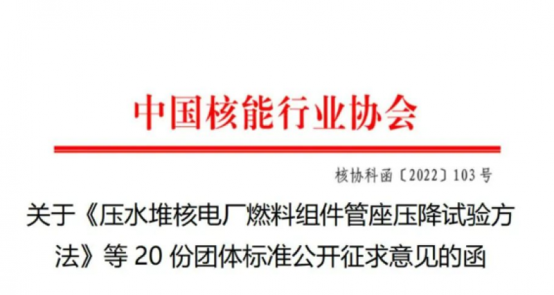 關(guān)于《壓水堆核電廠燃料組件管座壓降試驗(yàn)方法》等20份團(tuán)體標(biāo)準(zhǔn)公開(kāi)征求意見(jiàn)的函