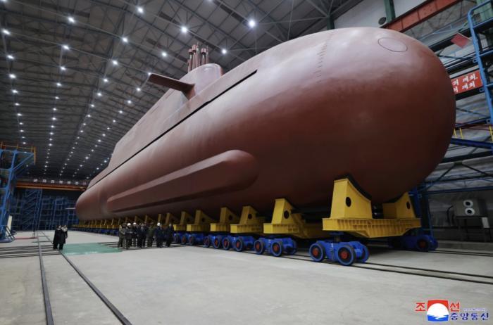 據朝中社25日報道,朝鮮勞動黨總書記、國務委員長金正恩現場指導了8700噸級核動力戰略導彈潛艇建造工作。造艦工業部門和國防科研及生產部門領導干部陪同前往。圖片來源:朝中社據報道,金正恩視察核潛艇建造現場,聽取了進展情況的匯報。圖片來源:朝中社當天,金正恩還具體了解新開發的水下秘密兵器研究工作進展情況,并提出了有關海軍武力改編和新部隊成立的戰略構想。...