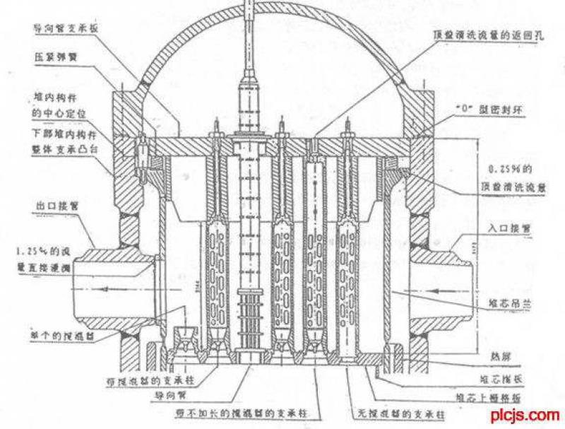壓力容器及其頂蓋整體有三個基本作用:一是作為包容反應堆堆芯的容器,起著固定和支撐堆內構件的作用,保證燃料組件按一定的間距在堆芯內的支撐與定位;二是作為反應堆冷卻劑系統的一部分,起著承受一回路冷卻劑與外部壓差的壓力邊界的作用;三是考慮到中子的外逸,起到對人員的生物防護的作用。
