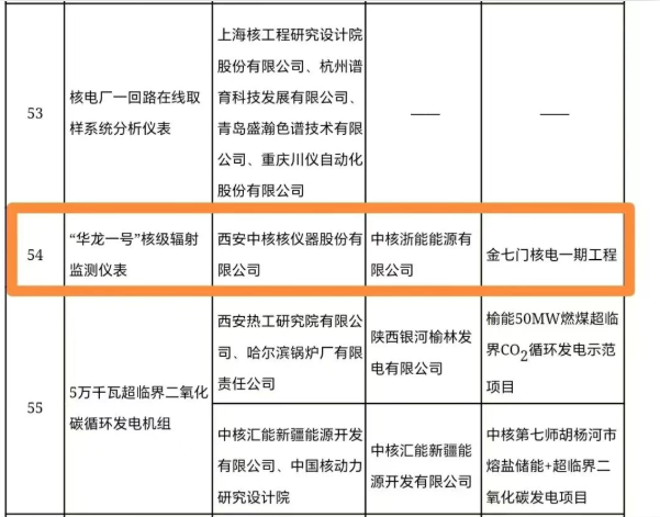 中核浙能“華龍一號核級輻射監測儀表”入選國家能源局首臺(套)重大技術裝備名單