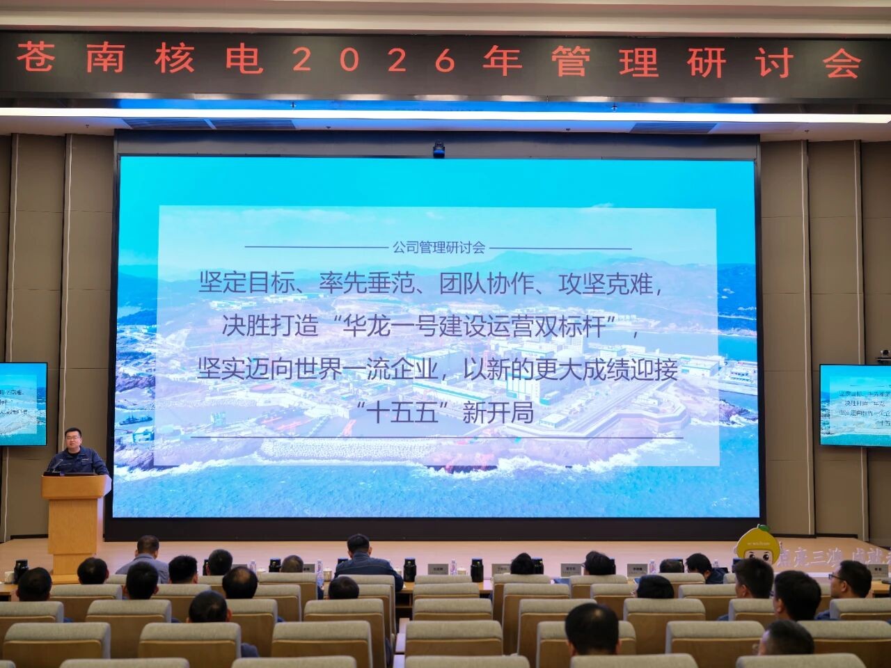 12月19日,蒼南核電召開2026年度重點工作管理研討會,會議主題是堅定目標、率先垂范、團隊協作、攻堅克難,決勝打造‘華龍一號建設運營雙標桿’,堅實邁向世界一流企業,以新的更大成績迎接‘十五五’新開局。會議聚焦公司十五五戰略目標,分析面臨的形勢和挑戰,規劃未來五年并細化2026年工作計劃,研究如何確保安質環管理、生產運營、維修管理、工程建設、黨建與職能等方面持續向好、提質增效。蒼南核電黨委委員、總經理部成...