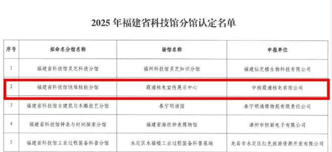 霞浦核電宣傳展示中心獲評福建省科技館快堆核能分館