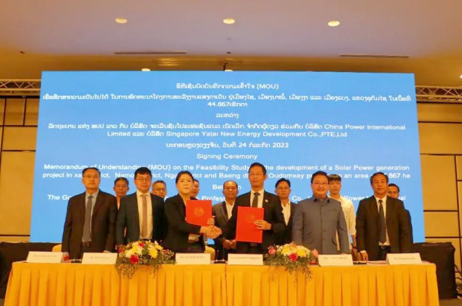 2023年7月24日,中電國際及合作方在老撾首都萬象與老撾政府計劃與投資部、能源與礦產部以及烏多姆賽省政府簽署了烏多姆賽新能源基地項目合作備忘錄。