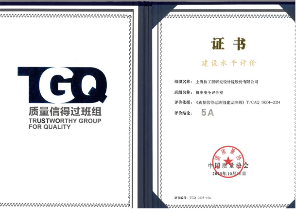 上海核工院PSA室獲全國質量信得過班組5A級稱號