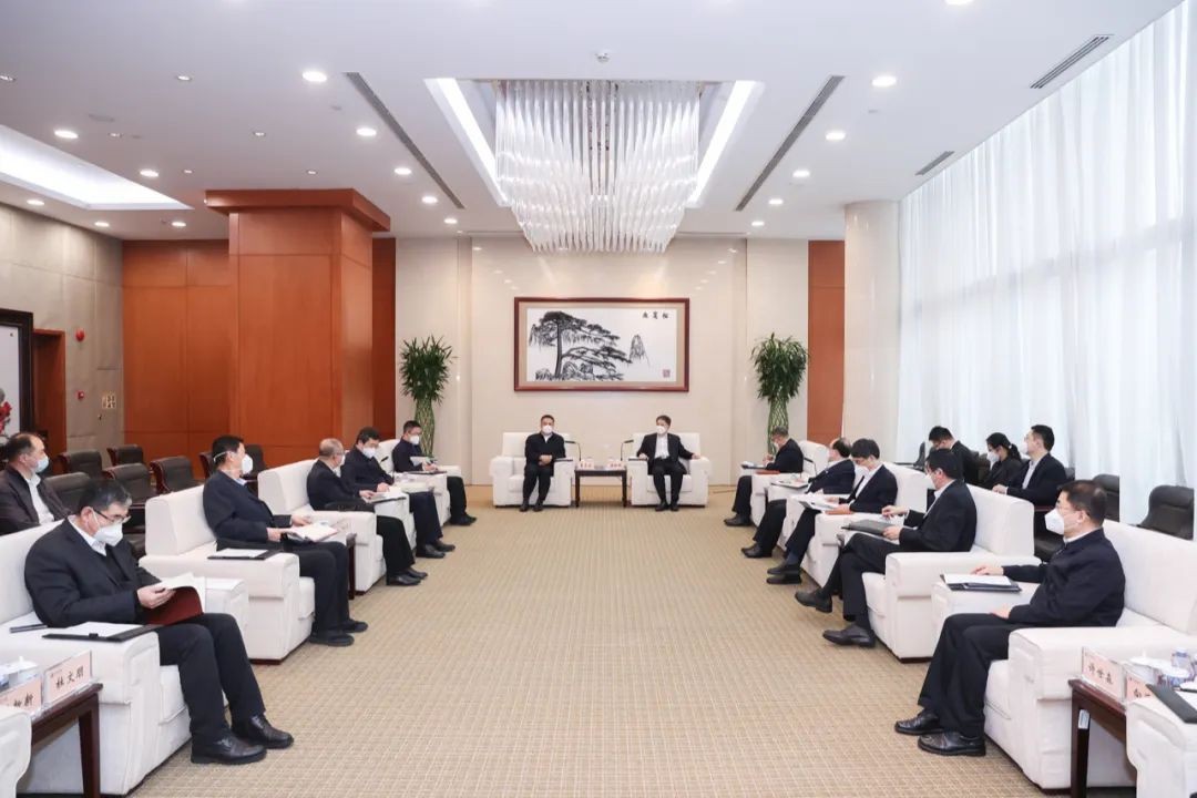 1月31日,中國華能集團有限公司黨組書記、董事長溫樞剛在集團總部會見中國電力企業聯合會黨委書記、常務副理事長楊昆一行,雙方就進一步加強溝通交流交換了意見。