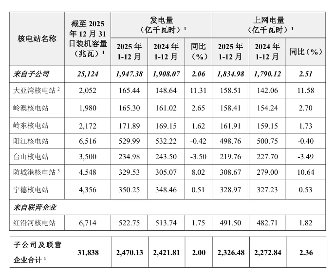 中國廣核:2025年核電機組總發(fā)電量約2470.13億千瓦時 同比增長2%