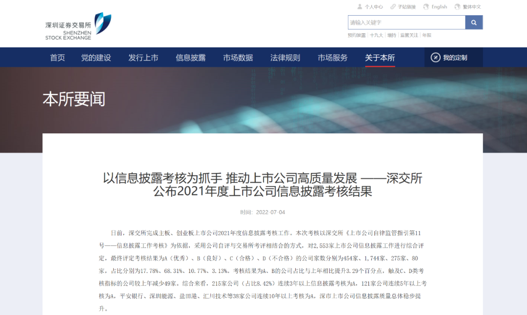 近日,深圳證券交易所公布了2021年度主板、創(chuàng)業(yè)板上市公司信息披露考核結(jié)果。中廣核核技術(shù)發(fā)展股份有限公司(股票簡稱:中廣核技,股票代碼:000881.SZ)獲深交所2021年度信息披露工作最高考核評級“A”,代表著監(jiān)管機(jī)構(gòu)和資本市場對公司信息披露質(zhì)量、規(guī)范運作水平、投資者關(guān)系管理等方面的認(rèn)可與肯定。