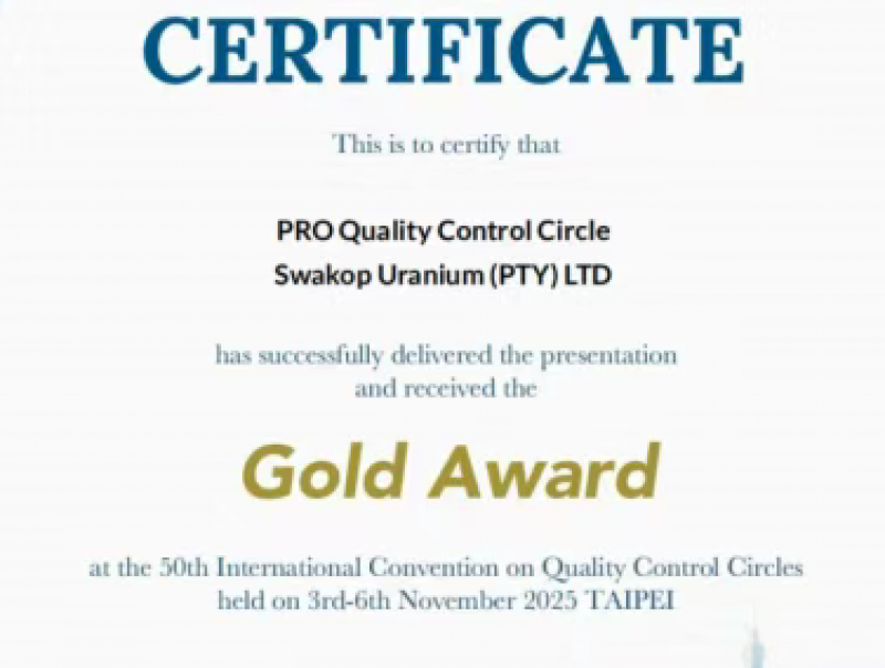 近日,被譽為質量領域奧林匹克盛會的第50屆國際質量管理小組會議(ICQCC)在中國臺北成功舉辦。大會吸引了來自15個國家和地區的884個優秀QC小組同臺競技。代表中廣核鈾業斯科公司參賽的兩個團隊憑借扎實的技術突破、嚴謹的成果呈現與流暢的英文答辯,均斬獲賽事最高榮譽金獎,成為納米比亞首家獲此國際殊榮的企業。本次獲獎的兩個QC小組來自中廣核鈾業斯科公司水冶部和運營公司(CNOC)湖山項目部成員組成的聯合攻堅團隊。在《降低硫酸泵設備...