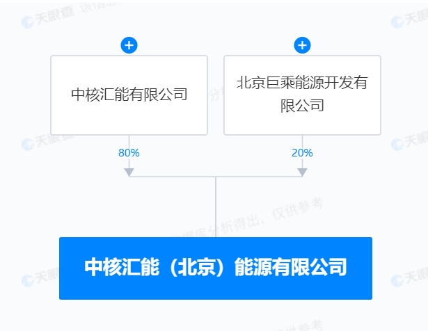 天眼查顯示,近日,中核匯能(北京)能源有限公司成立,法定代表人為段繼兵,注冊(cè)資本1000萬元,經(jīng)營(yíng)范圍包含:太陽(yáng)能發(fā)電技術(shù)服務(wù);風(fēng)力發(fā)電技術(shù)服務(wù);儲(chǔ)能技術(shù)服務(wù);電動(dòng)汽車充電基礎(chǔ)設(shè)施運(yùn)營(yíng)等。企查查股權(quán)穿透顯示,該公司由中國(guó)核電(601985)旗下中核匯能有限公司、北京巨乘能源開發(fā)有限公司共同持股。