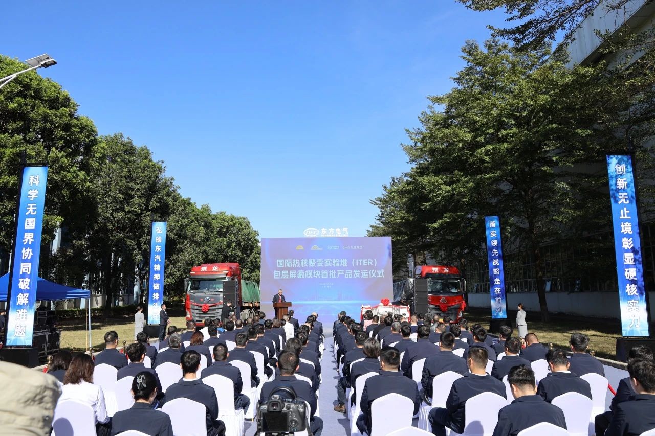 11月29日,國際熱核聚變實驗堆(ITER)計劃的包層屏蔽模塊全球首發儀式在東方電氣集團所屬東方重機舉行,首批48件包層屏蔽模塊以水陸聯運方式發往法國,兌現國際承諾。