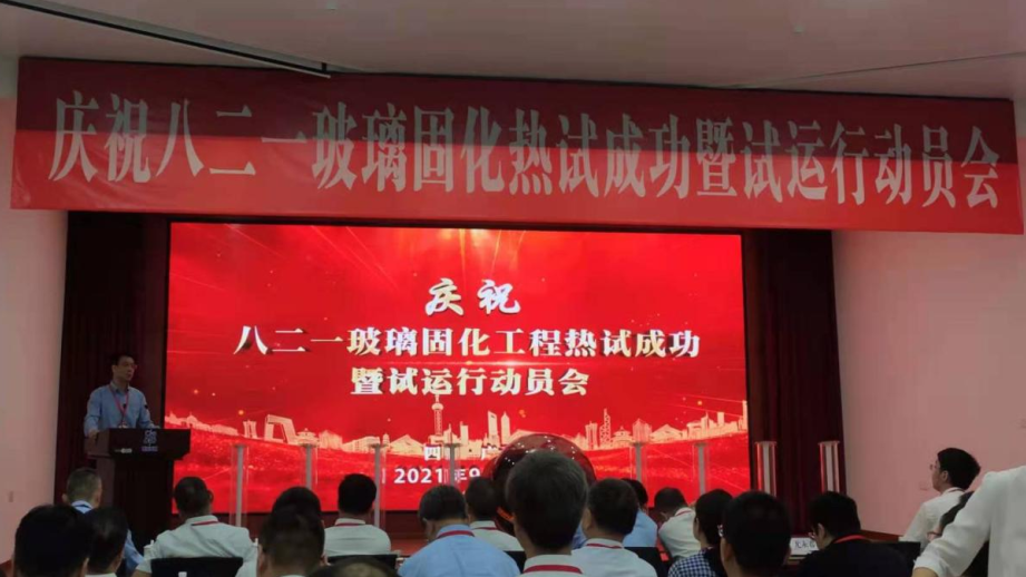 2021年9月11日19時52分,在國家原子能機構總工程師劉永德,中核集團黨組成員、副總經理馬文軍等領導的見證下,我國首座高放廢液玻璃固化設施熱調試成功。中國原子能作為參建單位參加了八二一玻璃固化熱試驗成功見證活動以及試運行啟動會。