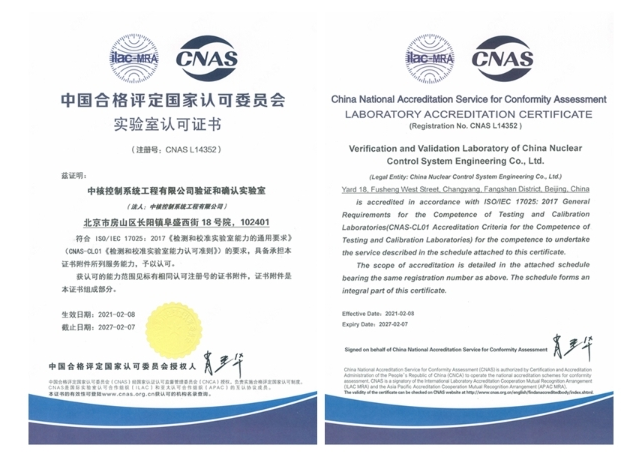 近日,中核控制驗證和確認實驗室(以下簡稱V&V實驗室)正式通過中國合格評定國家認可委員會現場評審和后續考察,成功獲得實驗室國家認可證書。這表明該實驗室具備了按照國家及國際認可準則開展檢測和校準的技術服務能力,為中核控制核儀控產品質量提供了更有力的技術支撐。