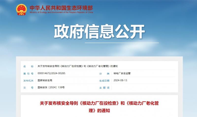 關(guān)于發(fā)布核安全導(dǎo)則《核動力廠在役檢查》和《核動力廠老化管理》的通知