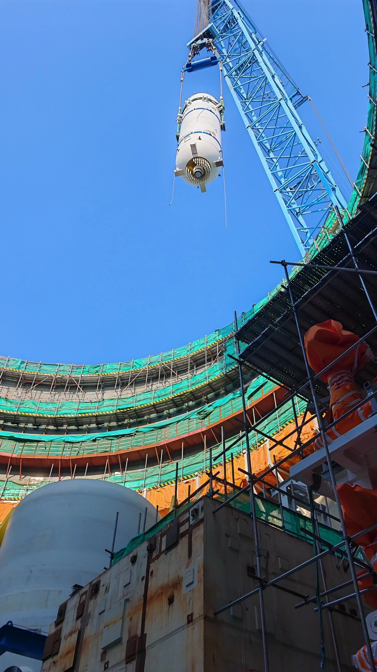 遼寧徐大堡核電1號機組核島鋼制安全殼頂封頭順利吊裝就位