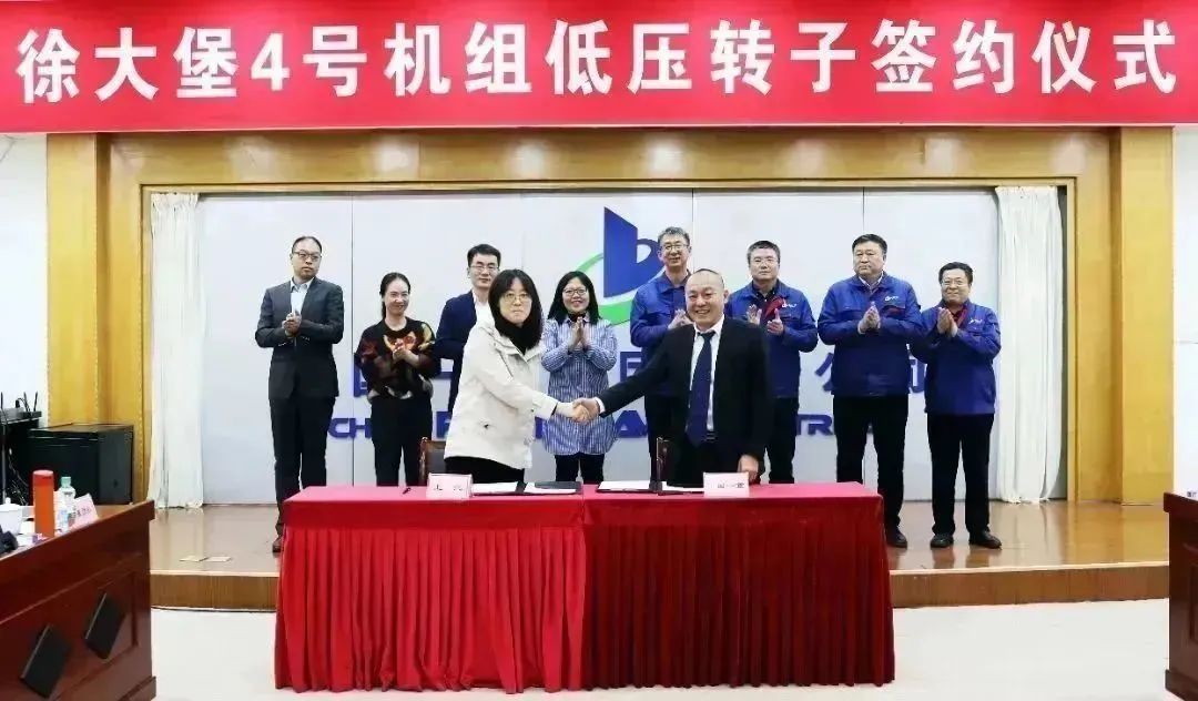 3月8日,中國一重與上海電氣電站設備有限公司上海汽輪機廠徐大堡4號機組低壓轉子簽約儀式在富拉爾基隆重舉行。