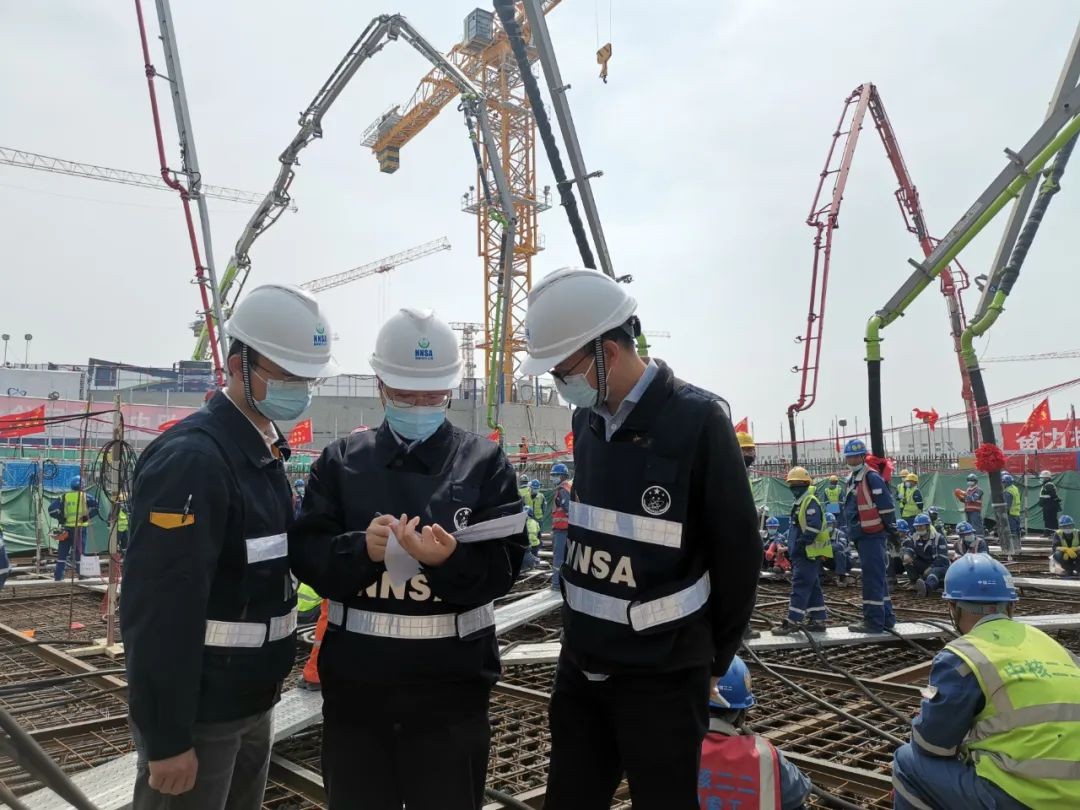為貫徹落實習近平總書記在中俄核能合作項目開工儀式上的重要講話精神,2022年5月19日,生態環境部東北核與輻射安全監督站(以下簡稱東北監督站)主要負責同志帶隊赴徐大堡核電廠4號機組核島現場,與監督員共同對澆筑條件再次進行了核實確認,10時16分,4號機組開始核島基礎第一罐混凝土澆筑(FCD)活動。