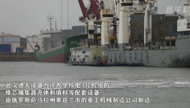 11月29日,中俄核能合作項(xiàng)目——徐大堡核電3號(hào)機(jī)組首批俄供大件設(shè)備(堆芯捕集器殼體和填料等配套設(shè)備),經(jīng)過90天、13000余海里的遠(yuǎn)洋運(yùn)輸,從俄羅斯圣彼得堡港安全運(yùn)抵中國葫蘆島港。