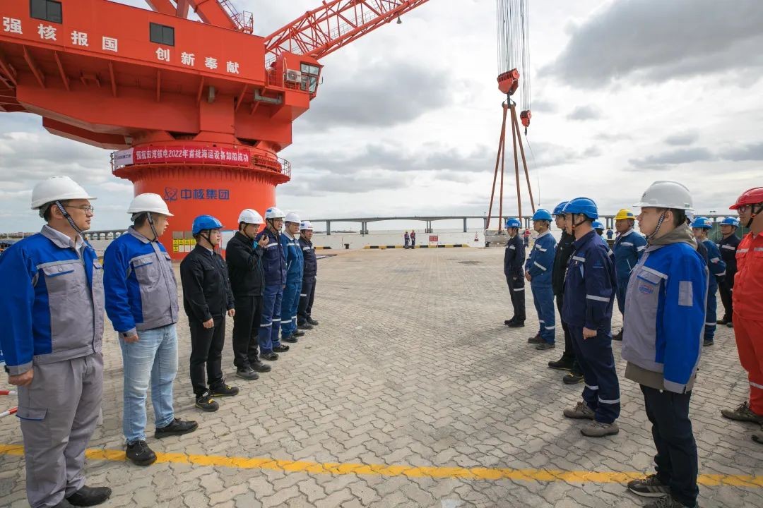 10月5日清晨,田灣核電自備碼頭一片繁忙景象,各方作業人員齊聚碼頭,準備迎接田灣核電8號機組重要設備——堆芯捕集器的到來。8點02分,隨著一聲響亮的汽笛聲,載有8號機組堆芯捕集器的“鴻遠79號”駁船緩緩駛入自備碼頭航道,并順利靠泊開始卸船作業。