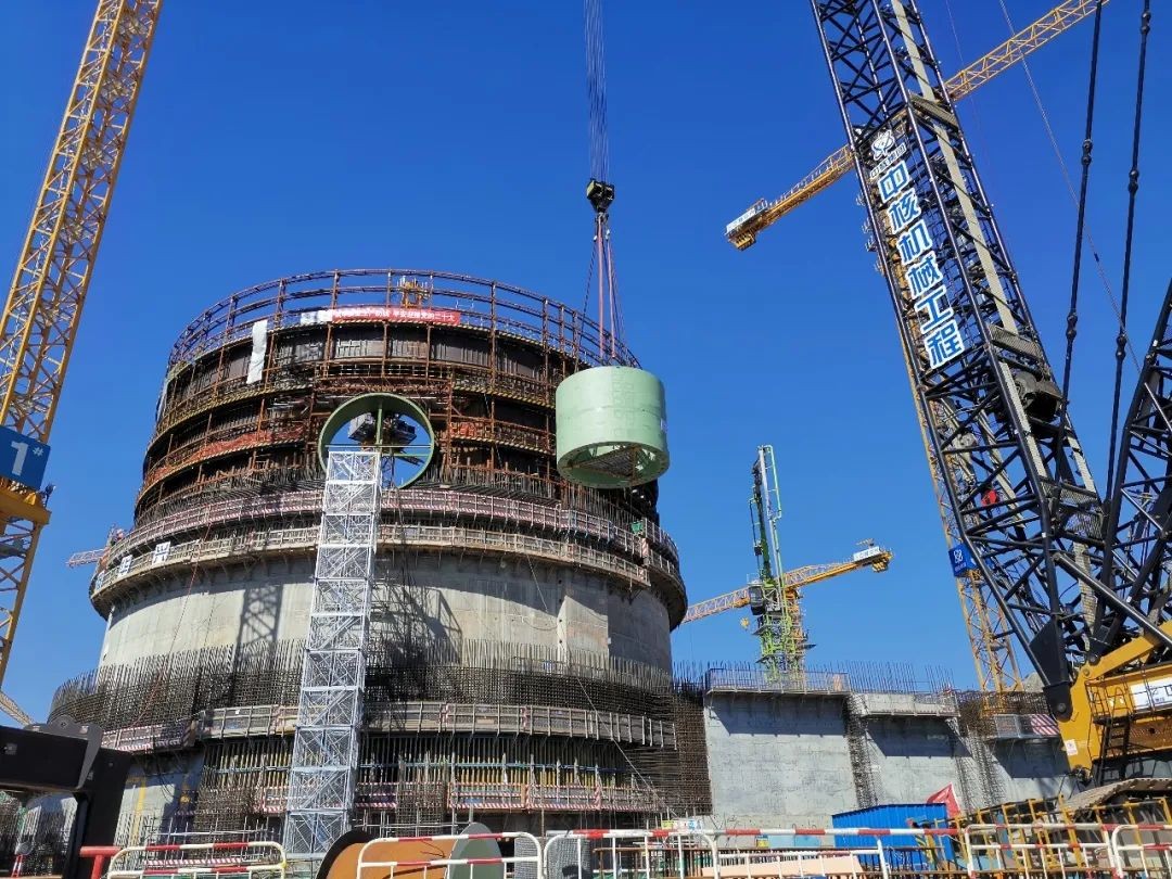 2022年10月17日14:39,田灣核電站7號機組內部結構干保護吊裝就位在反應堆廠房豎井+4.754m標高支座上,7號核島堆芯主線施工又向前推進了一步。