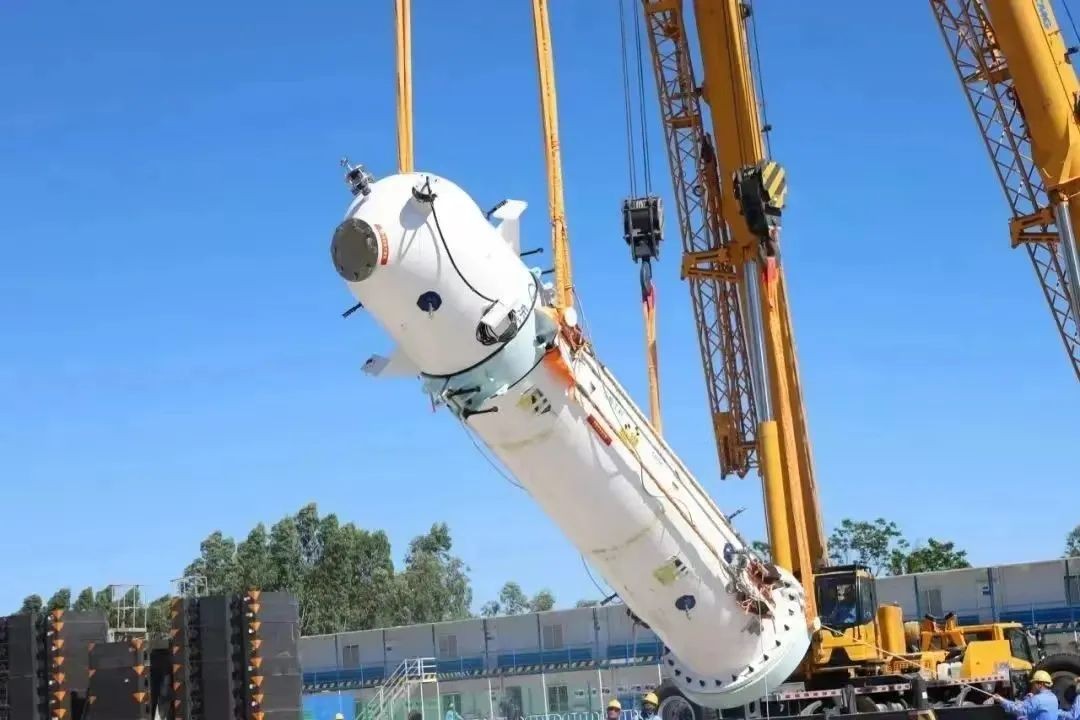 7月6日11時26分,伴隨著落鉤時的一聲哨響,海南昌江多用途模塊化小型核反應堆“玲龍一號”首臺主系統專業設備——穩壓器順利就位。