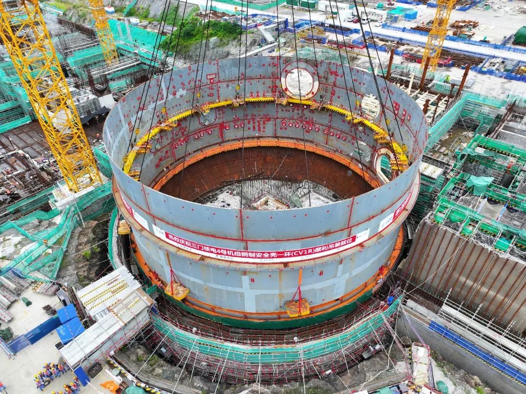 8月29日,三門核電4號機組鋼制安全殼一環順利吊裝就位。這是繼4號機組安全殼底封頭吊裝就位后的又一里程碑節點,為4號機組核島反應堆廠房后續施工創造了有利的條件。