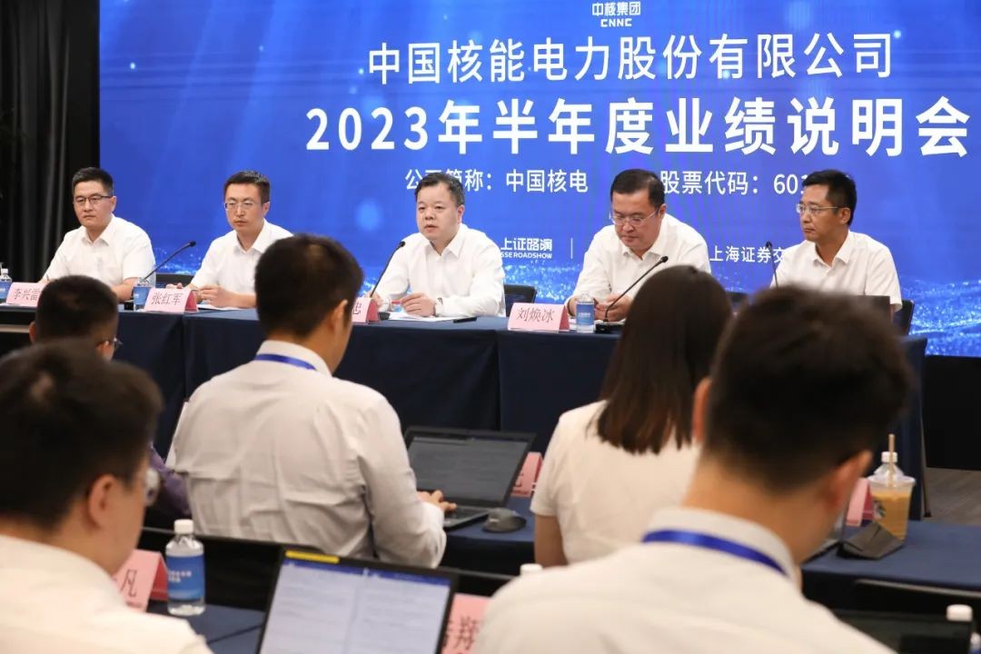 8月31日,中國核電發布2023年中期業績,并于9月4日在上海采用現場交流、網上直播與連線的方式舉行“線上+線下”業績說明會。公司董事長、黨委書記盧鐵忠、總會計師劉煥冰等公司領導及相關部門負責人出席現場會議,對全年業績表現、經營情況、未來發展戰略等進行介紹,并就投資者關注的問題進行詳細解答。