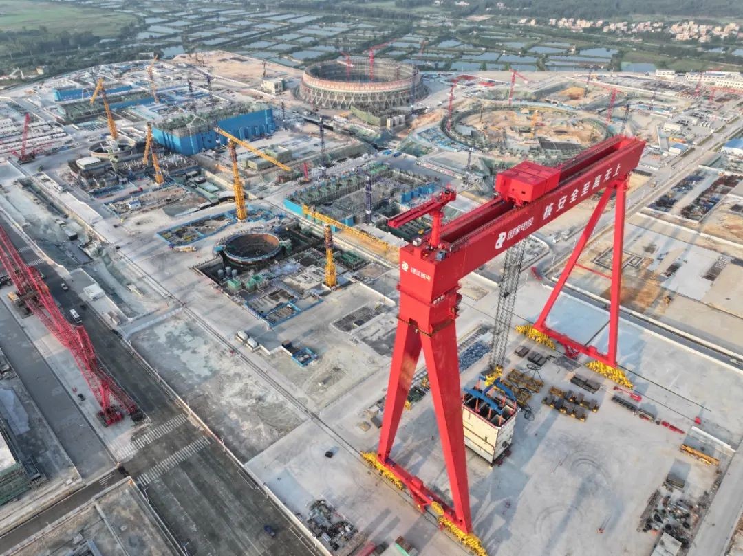 廉江核電1號機組鋼制安全殼筒體二環吊裝就位