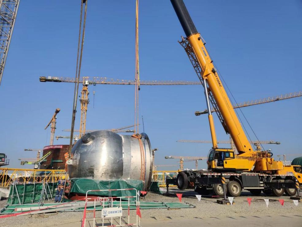 華能海南昌江核電二期項目4號機組首臺安注箱順利吊裝就位
