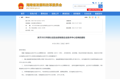 為深入貫徹落實海南省以超常規手段打贏科技創新翻身仗的三年行動方案,根據《海南省企業技術中心認定管理辦法》(瓊發改規〔2021〕14號),海南省發展和改革委員會于2022年3月份組織開展了2022年海南省企業技術中心認定工作。近日,海南省發展和改革委員會公布了2022年海南省認定企業技術中心名單,海南核電有限公司成功入選。