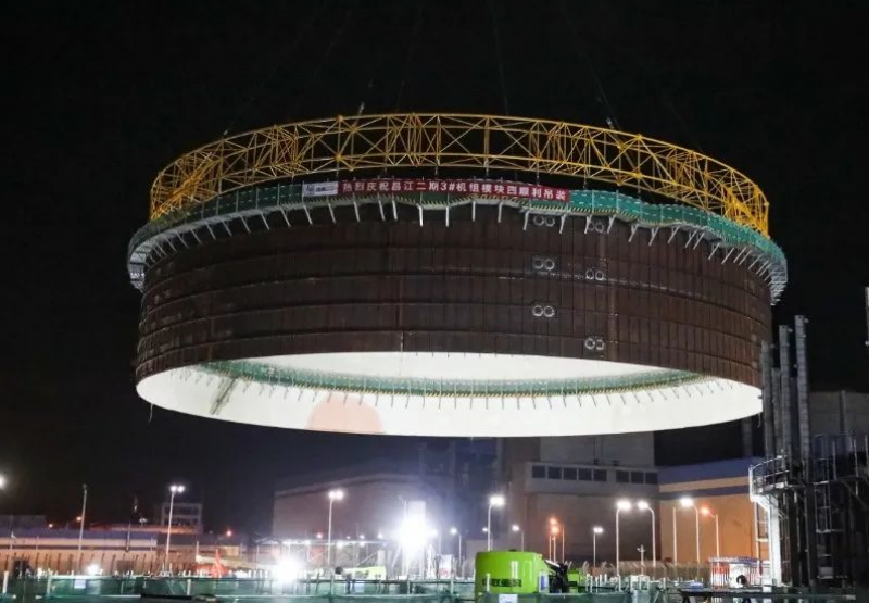 2022年3月29日6時(shí)58分,歷時(shí)2小時(shí),海南昌江核電二期3號(hào)機(jī)組安全殼鋼襯里模塊四順利吊裝就位,較上次模塊三吊裝縮短約48分鐘,為3號(hào)機(jī)組內(nèi)穹頂拼裝騰出場(chǎng)地,確保內(nèi)穹頂能夠按時(shí)開(kāi)始拼裝,為3號(hào)機(jī)組土建階段最后一個(gè)一級(jí)里程碑節(jié)點(diǎn)內(nèi)穹頂?shù)跹b的施工奠定堅(jiān)實(shí)的基礎(chǔ)。