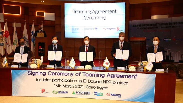 2021年3月7日,韓國水電與核電公司(KHNP)表示,該公司計劃與埃及本土企業合作參與達巴(El-Dabaa)核電項目。根據此前簽署的協議,韓國電力工程建設公司(KEPCO E&C)、韓國現代工程建設公司(Hyundai E&C)、韓國斗山重工建設公司以及KHNP將利用其在核電廠建設方面的經驗,參與埃及達巴核電項目。KHNP已決定為埃及提供技術員和專家培訓,并建立長期合作伙伴關系。