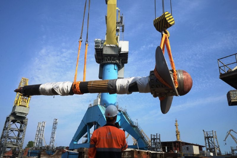 通用核破冰船楚科奇號的軸系安裝工作已經開始。來自聯合造船公司波羅的海造船廠的專家將連接破冰船螺旋槳的第一個螺旋槳軸到船尾。