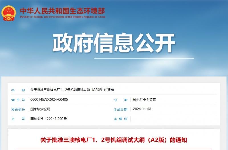 關于批準三澳核電廠1、2號機組調試大綱(A2版)的通知