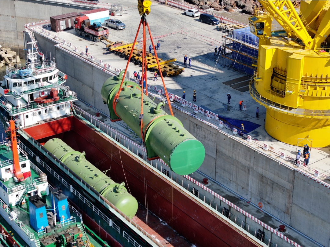 12月5日,三澳核電項目1號機組除氧器順利到達現場重件碼頭。