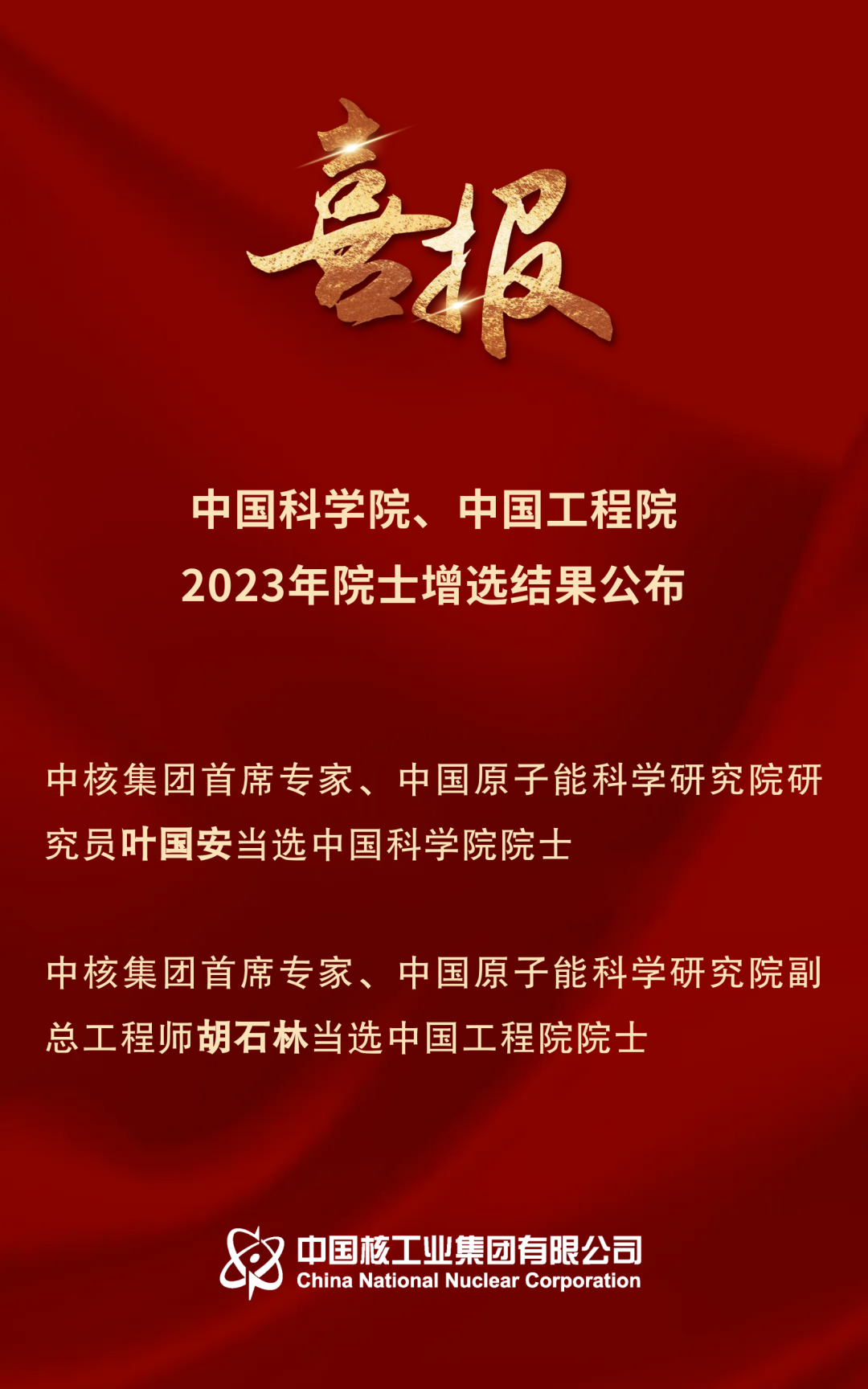 喜訊!中核集團葉國安、胡石林當選院士
