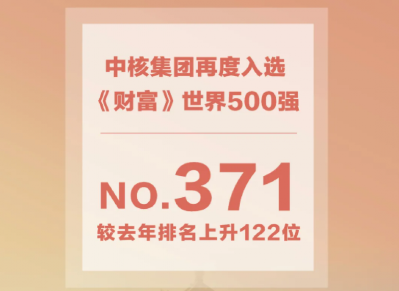 北京時間8月2日,美國《財富》雜志公布最新一期世界500強排名,中核集團再度入選,位列第371位,排名較去年大幅上升122位。