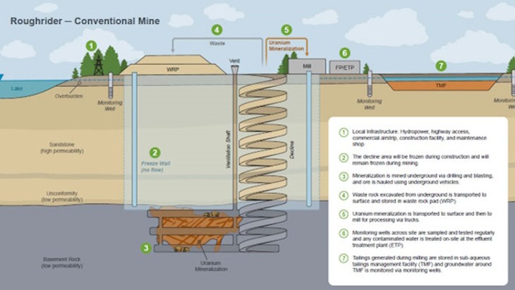 總部位于德克薩斯州科珀斯克里斯蒂的鈾能公司(UEC)近日公布了其位于薩斯喀徹溫省北部的鈾礦項目——Roughrider的初步經濟評估報告摘要。該報告預計,在九年的地下作業中,該項目將生產6120萬磅U3O8(相當于23,540噸鈾)。UEC于2022年以1.5億美元的價格從力拓手中收購了Roughrider項目。此次更新的SK 1300技術報告摘要顯示,指示類別的總資源量為2786萬磅U3O8,平均品位為1.81% U3O8;推斷類別的總資源量為3338萬磅U3O8,平均品位為2.45% U3O8。...