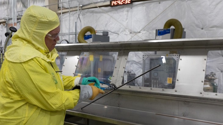 愛達荷國家實驗室貧鈾鋯合金樣品的擠壓是 Lightbridge 公司先進核燃料技術鑒定過程中的關鍵一步。