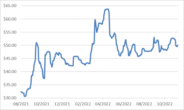 CNEA國際天然鈾價格預測指數(2022年11月)